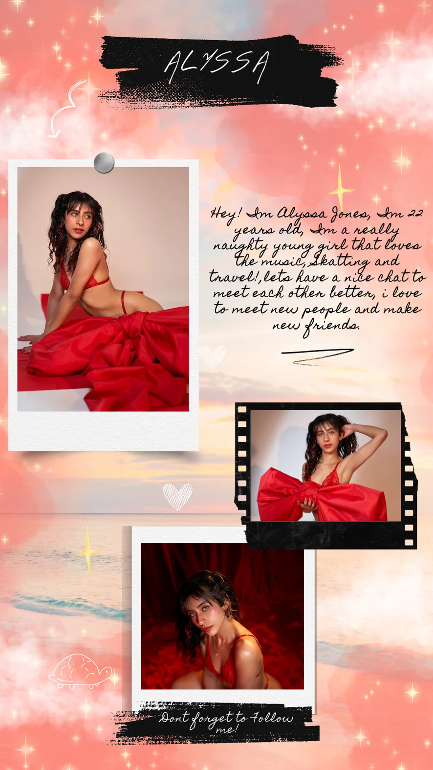 Hey! Im Alyssa Jones, Im 22 years old, Im a really naughty young girl that loves the music, Skatting and travel!,lets have a nice chat to meet each other better, i love to meet new people and make new friends.